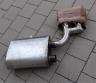 Durch den letzten Versuch hatte ich aber gelernt, was dann zum vollen Erfolg führte! Der „Helmholtzresonator“ !!! Funktion des Resonators mal einfach erklärt: Die Abgase kommen in Druckimpulsen und hinter jedem Hochdruck folgt durch die hohe Strömungsgeschwindigkeit ein Tiefdruck. Der Helmholtzresonator ist nur eine Kammer, die den Hochdruck aufnimmt, und ihn an den nachfolgenden Tiefdruck wieder abgibt. Das Ergebnis ist also eine gleichmäßige Strömung. Und eine gleichmäßige Strömung bedeutet leiser Sound ohne Dröhnen. Zuerst wurde die Borla Stinger wieder in ihren Originalzustand versetzt. Dann wurde ein Loch ausgeschnitten und eine Klappe angeschweißt, welche die Öffnung zum Helmholtzresonator öffnen und verschließen kann. Für alle Teile wie Bleche, Rohre, Schrauben, Schweißdraht, usw. hab ich Edelstahl verwendet. Auf dem Bild sind auch schon die Seitenwände für den Topf angeschweißt.